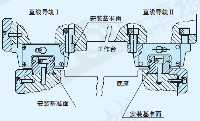 當需要直線運動的精度和剛性時,可設2處底座安裝基準面,1處工作臺安裝基準面,并按照下面的步驟安裝直線導軌。