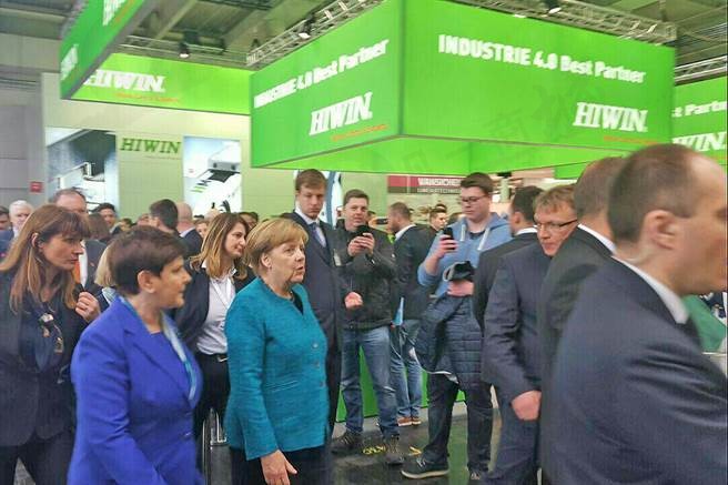 漢諾威工業(yè)展開展首日,德國總理梅克爾造訪上銀科技展臺,上銀主管表示,有了梅克爾到訪幫忙造勢,開展以來人潮絡(luò)繹不絕。