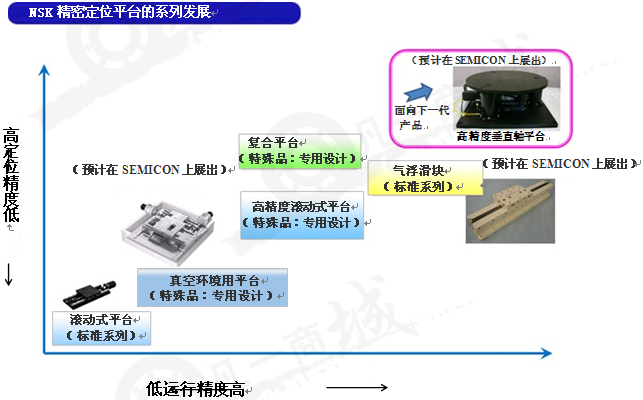 迄今,NSK已成功開發(fā)出定位平臺(tái)高性能化所需要的關(guān)鍵零部件。