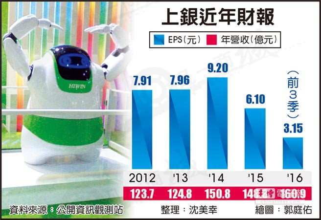 中國大陸對智慧自動化及機器人需求持續(xù)增溫,今年首季滾珠螺桿、直線導(dǎo)軌及機器人訂單滿載,上銀因應(yīng)汽車產(chǎn)業(yè)發(fā)展朝向節(jié)能,不管是動力方向盤或煞車都改用伺服馬達控制,中間需用到智慧滾珠螺桿,上銀已完成產(chǎn)品開發(fā),預(yù)計2017年下半年開始量產(chǎn),2018年需求量放大,上銀轉(zhuǎn)投資陸聯(lián)精密機械去年11月陸續(xù)接獲近億元五軸同動傘齒機訂單,今年陸續(xù)交貨,新增電動刀座事業(yè)、同步擴大刀具規(guī)模,法人預(yù)期,上銀今年營收有機會優(yōu)于去年。