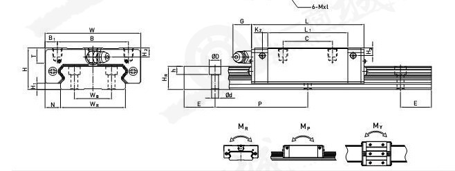 上銀導軌WE系列─寬幅型滾珠線性滑軌: