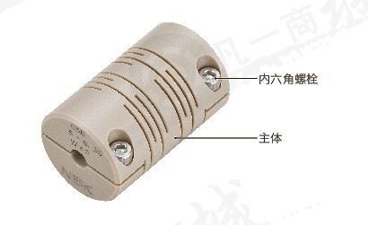 ◆在圓柱材料上開槽、完全一體構(gòu)造的樹脂彈簧聯(lián)軸器。