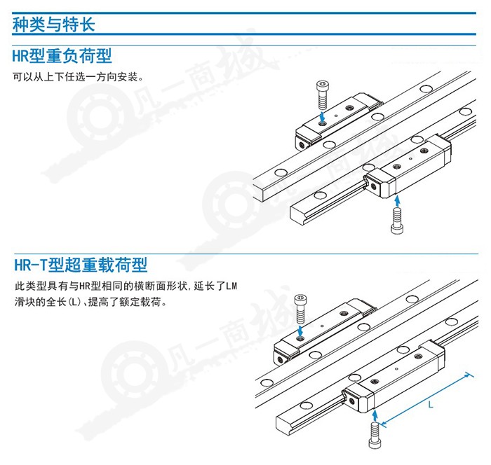 HR型為保持器不移動的無限運動類型,所以不像交叉滾柱導軌那樣會產(chǎn)生保持架的偏移。另外,HR型的斷面尺寸近似于交叉滾柱導軌,因此可以和交叉滾柱導軌互換。