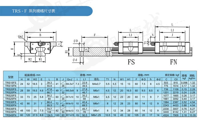 TBI直線導(dǎo)軌為一種滾動(dòng)導(dǎo)引,借由鋼珠在滑塊與滑軌之間作無限滾動(dòng)循環(huán),負(fù)載平臺(tái)能沿著滑軌輕易地以高精度作線性運(yùn)動(dòng)。與傳統(tǒng)的滑動(dòng)導(dǎo)引相較,滾動(dòng)導(dǎo)引的摩擦系數(shù)可降低至原來的1/50,由于起動(dòng)的摩擦力大大減少,相對(duì)的較少無效運(yùn)動(dòng)發(fā)生,故能輕易達(dá)到μm級(jí)進(jìn)給及定位。再加上滑塊與滑軌間的束制單元設(shè)計(jì),使得直線導(dǎo)軌可同時(shí)承受上下左右等各方向的負(fù)荷,上述陳列特點(diǎn)并非傳統(tǒng)滑動(dòng)導(dǎo)引所能比擬,因此機(jī)臺(tái)若能配合滾珠螺桿,使用直線導(dǎo)軌作導(dǎo)引,必能大幅提高設(shè)備精度與機(jī)械效能。