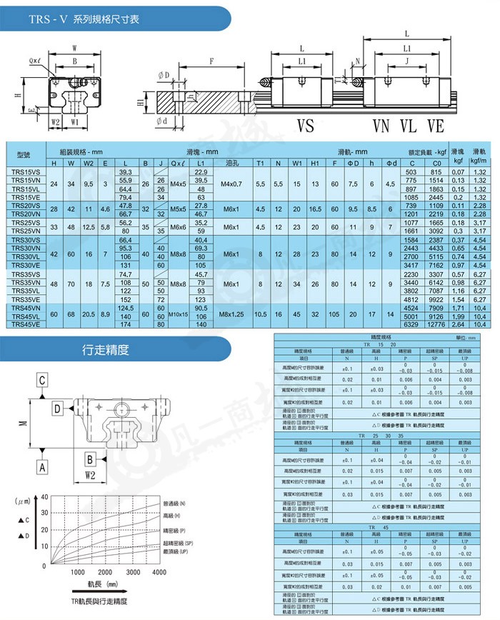 TBI直線導(dǎo)軌為一種滾動導(dǎo)引,借由鋼珠在滑塊與滑軌之間作無限滾動循環(huán),負載平臺能沿著滑軌輕易地以高精度作線性運動。與傳統(tǒng)的滑動導(dǎo)引相較,滾動導(dǎo)引的摩擦系數(shù)可降低至原來的1/50,由于起動的摩擦力大大減少,相對的較少無效運動發(fā)生,故能輕易達到μm級進給及定位。再加上滑塊與滑軌間的束制單元設(shè)計,使得直線導(dǎo)軌可同時承受上下左右等各方向的負荷,上述陳列特點并非傳統(tǒng)滑動導(dǎo)引所能比擬,因此機臺若能配合滾珠螺桿,使用直線導(dǎo)軌作導(dǎo)引,必能大幅提高設(shè)備精度與機械效能。