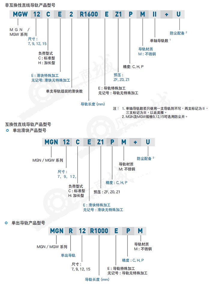 MGN 體積小、輕量化,特別適合小型化設(shè)備使用。 滑塊、導(dǎo)軌材質(zhì)提供不銹鋼及合金鋼兩種。不銹鋼材質(zhì)之直線導(dǎo)軌,包含滑塊、導(dǎo)軌及其它金屬配件如鋼珠、保持器等,皆使用不銹鋼材質(zhì),具備防銹的特性。 采用哥德型四點接觸設(shè)計,可承受各方向負荷,具備剛性強,精度高等特性。 有鋼珠保持器設(shè)計,在精度允許下具備互換性。